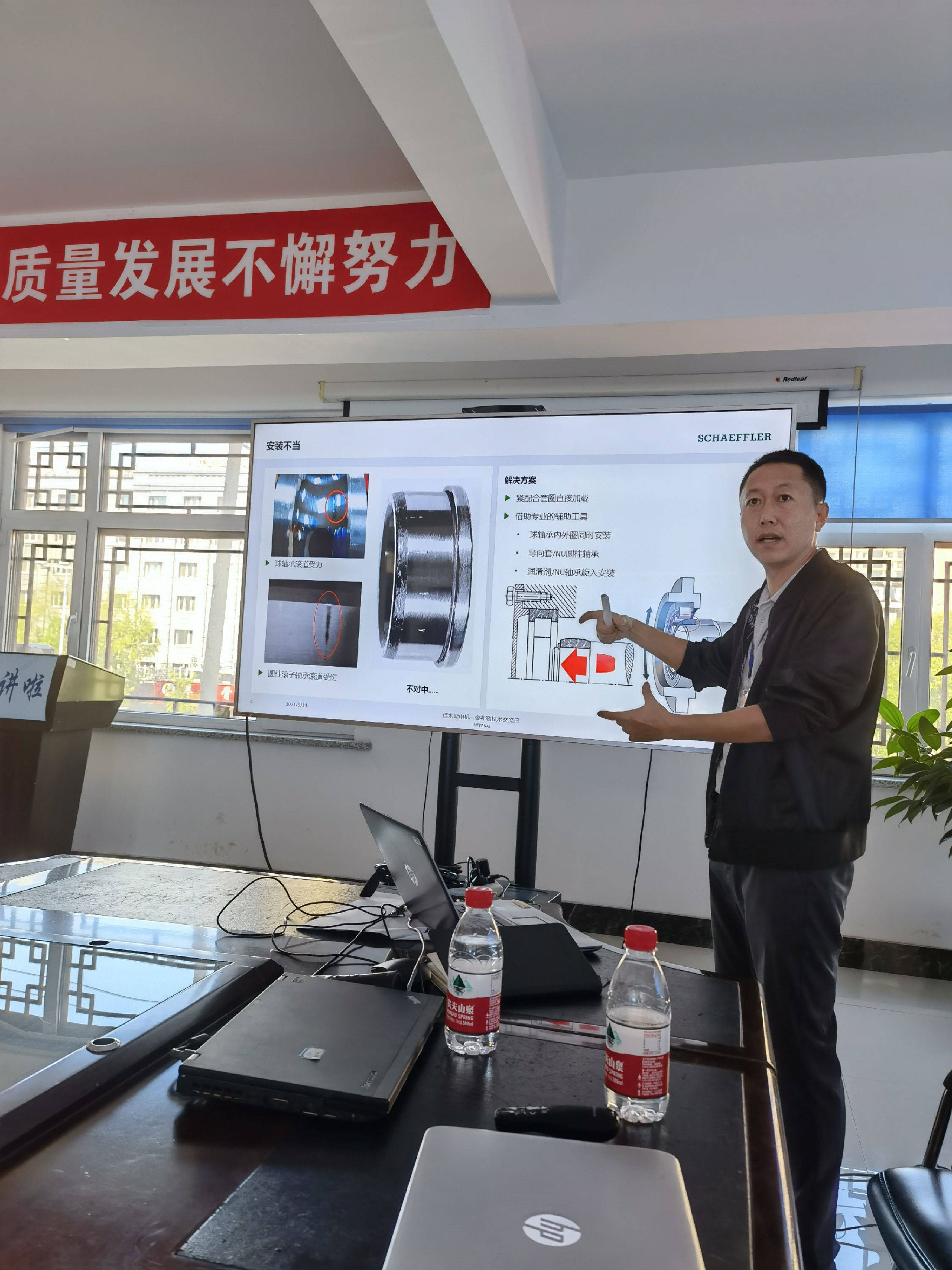 2021年9月14日我公司應(yīng)佳木斯電機(jī)股份有限公司邀請(qǐng)舉行專(zhuān)場(chǎng)FAG軸承技術(shù)交流會(huì)議。在舍弗勒(上海)貿(mào)易有限公司鼎力支持下張明義 、張之濱、劉元朋三位高級(jí)工程師出席技術(shù)交流會(huì)議并做相關(guān)技術(shù)培訓(xùn)。佳木斯電機(jī)股份有限公司設(shè)計(jì)部、工藝部、質(zhì)檢部等各部門(mén)科室領(lǐng)導(dǎo)共七十余人參加會(huì)議。
