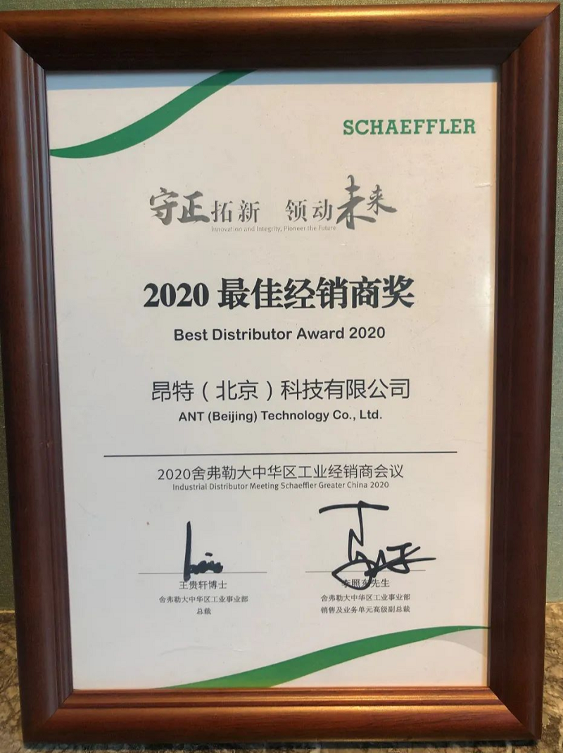昂特(北京)科技有限公司作為舍弗勒A級經(jīng)銷商,經(jīng)過多年同舍弗勒集團的深入合作,榮獲殊榮: